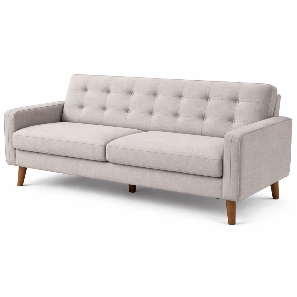 Sofá de tela gris claro con patas de madera 210x85x75 cm